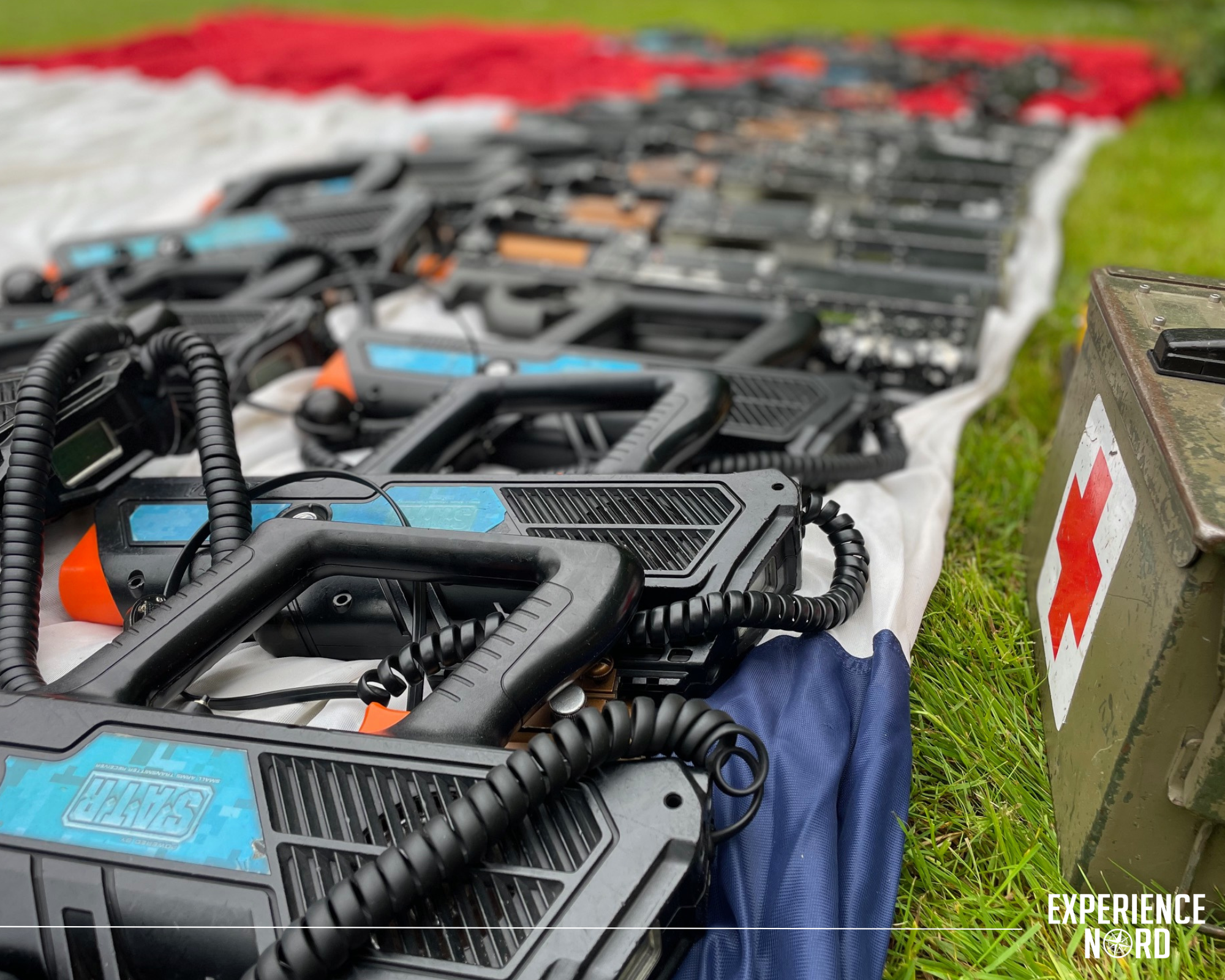 Lors de cette animation Laser Tag, vous bénéficiez de 5 vies par jeu et de plusieurs chargeurs virtuels. Votre but est d’éliminer les adversaires en touchant les capteurs situés sur le bout de l’arme ou sur le front.