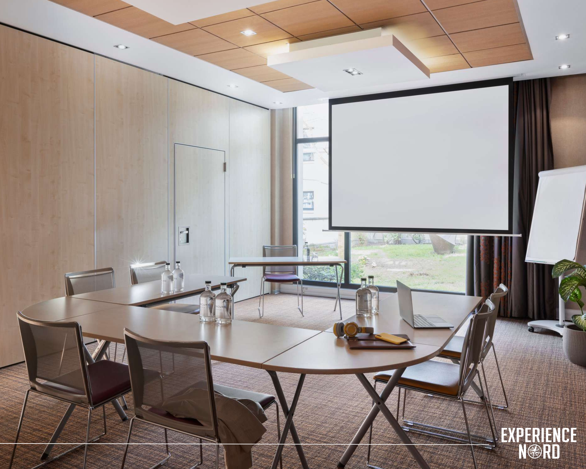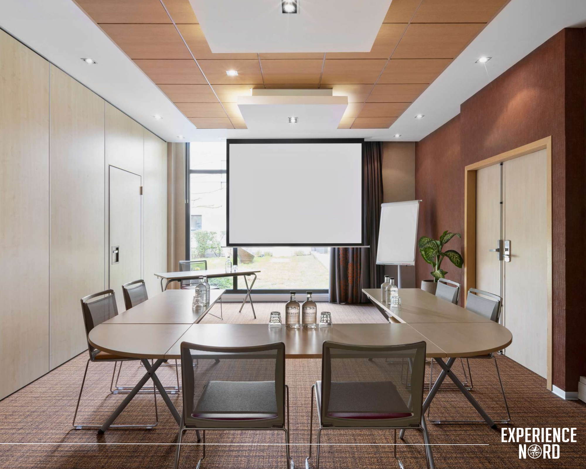 Pour les événements professionnels, l’établissement met à disposition plusieurs salles de réunion modulables. Ainsi, vous pouvez accueillir jusqu’à 110 personnes selon la configuration. Ces espaces sont équipés de matériel audiovisuel performant et d’une connexion Wi-Fi haut débit, répondant aux besoins des réunions, formations, conférences ou journées d’étude.