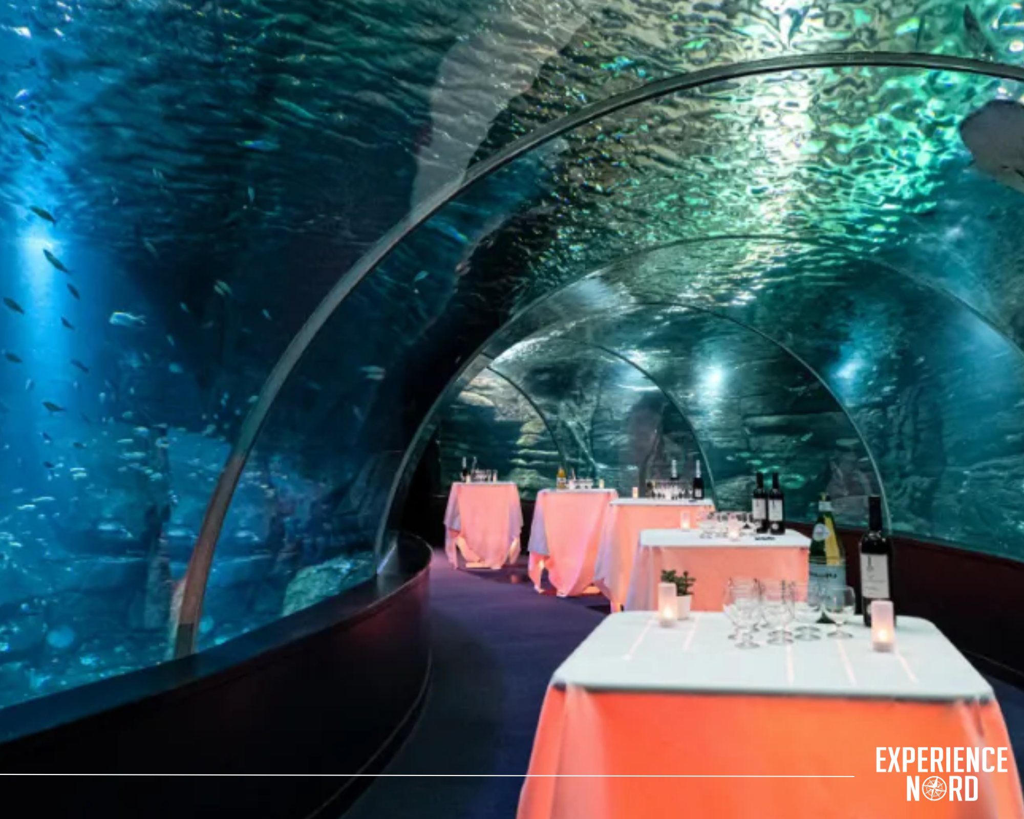 La Grande Baie impressionne par son décor unique : une baie vitrée monumentale de 20 mètres de long sur 5 mètres de haut, offrant une vue fascinante sur le monde marin. Elle peut accueillir jusqu’à 250 personnes en configuration assise et 400 personnes en cocktail debout, pour des événements d’envergure dans un cadre exceptionnel.